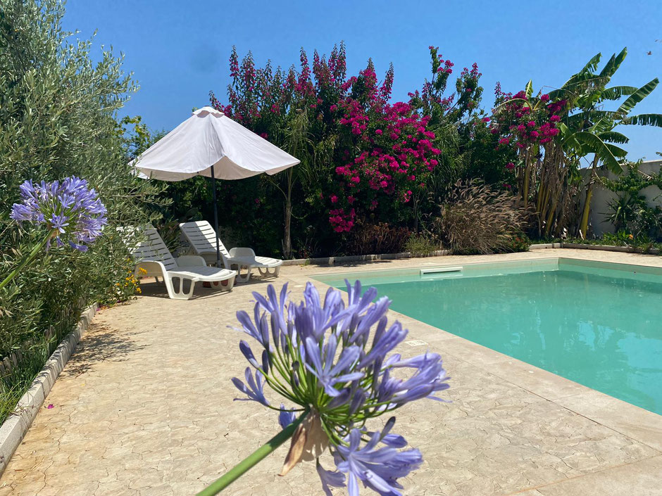 Das Haus bietet im ersten Stock eine komfortable Wohnung mit Meersicht, im Parterre fünf Doppelzimmer mit eigenem Bad, eine voll ausgestattete Küche, Swimmingpool und Garten – ideal für den Betrieb eines B&B oder zur privaten Nutzung.
